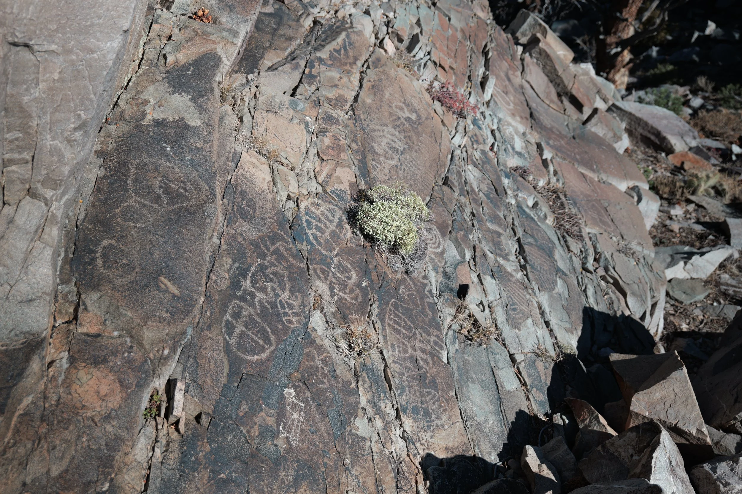 The hike up Stirling is nice. It was 105 degrees in Las Vegas the day I did it so I was happy to get out of the heat. I had cell service once I got near the peak but was without it on most of the climb. It’s a VERY remote stretch of wilderness that is seldom hiked so you’re unlikely to encounter anyone else on the journey. Definitely the type of outing where I pack my Garmin Inreach just in case. If you spend some time combing the slopes, you’ll discover a number of well preserved petroglyph sites dotting the mountain. I didn’t originally set out looking for these, but after I stumbled on one set, I climbed around for a little while and was able to find at least 5 other sites. I’m told there are Native American artifacts up here as well but I didn’t find them on this trip. Maybe next time.